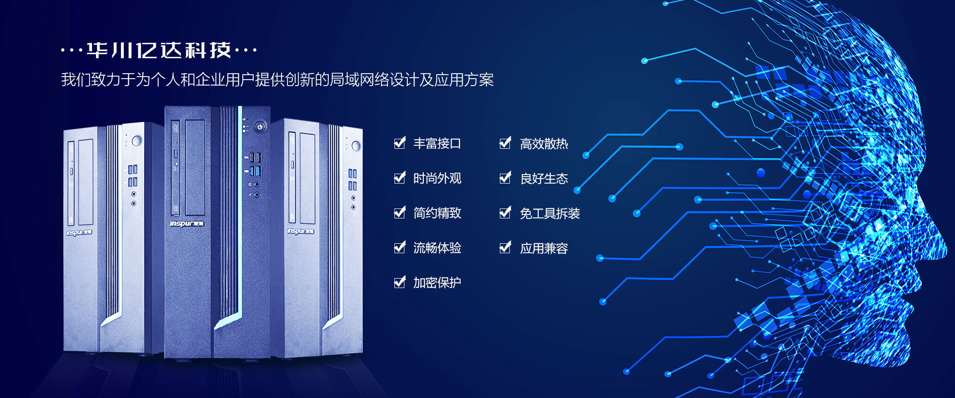 四川华川亿达科技有限公司是一家致力于为个人和企业用户提供创新的局域网络设计及应用方案。主要从事IT全面服务,从事计算机软硬件产品代理及销售、系统集成、软件开发、技术服务、互联网服务和计算机网络工程等于一体,提供全面的电脑系统维护服务的综合性公司。